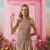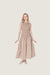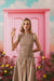 RUCHED CHESTNUT STRIPE MIDI DRESS